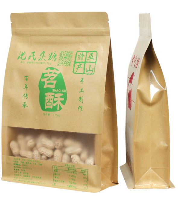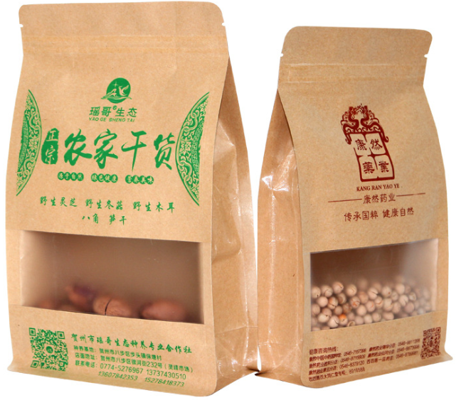 牛皮紙八邊封包裝袋是以全木漿紙為基材,顏色分為白色牛皮紙和黃色牛皮紙,可在紙上采用PP料淋一層膜,起防水作用,袋子強(qiáng)度可以根據(jù)客戶的要求制成一到六層,印刷和制袋一體化。開口和封底方式分為熱封,紙封和湖底。